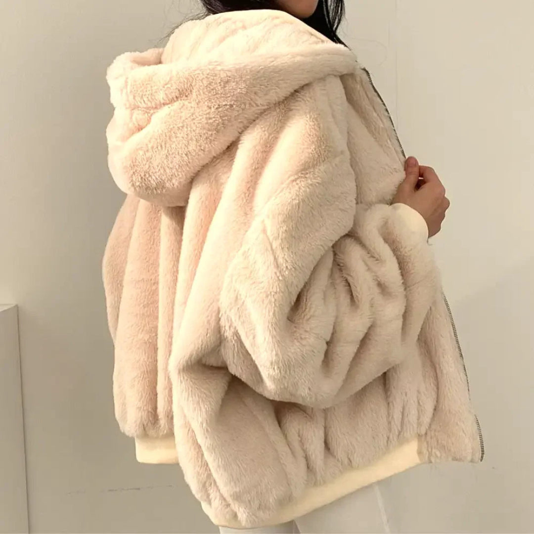 Stay warm and effortlessly stylish with this hoodie, designed with two distinct textures for versatile winter wear. One side features a plush, velvety finish, while the reverse offers a smooth, soft-touch fabric.