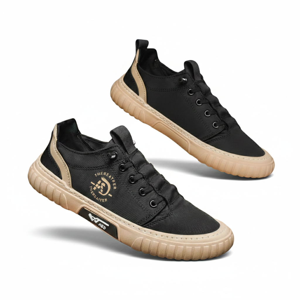 Step up your style with the Nathan Nova Contrast Sneakers—crafted for those who embrace modern street fashion. Featuring a bold black upper contrasted with a textured tan sole, these sneakers provide both style and durability. Whether you’re navigating the city or chilling with friends, these kicks deliver all-day comfort with a cushioned insole and a grippy rubber outsole.