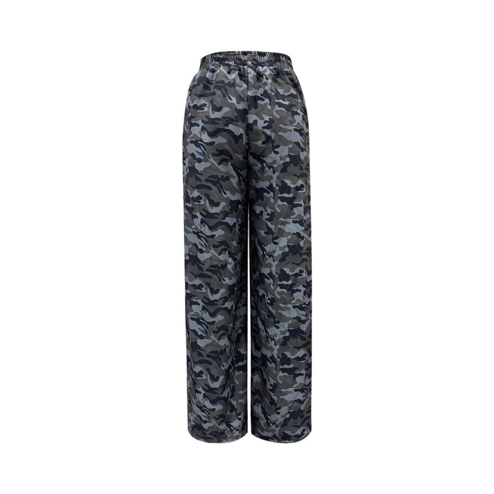 Women Elastic Waist Camo Wide Pants LionStyle