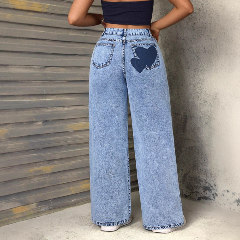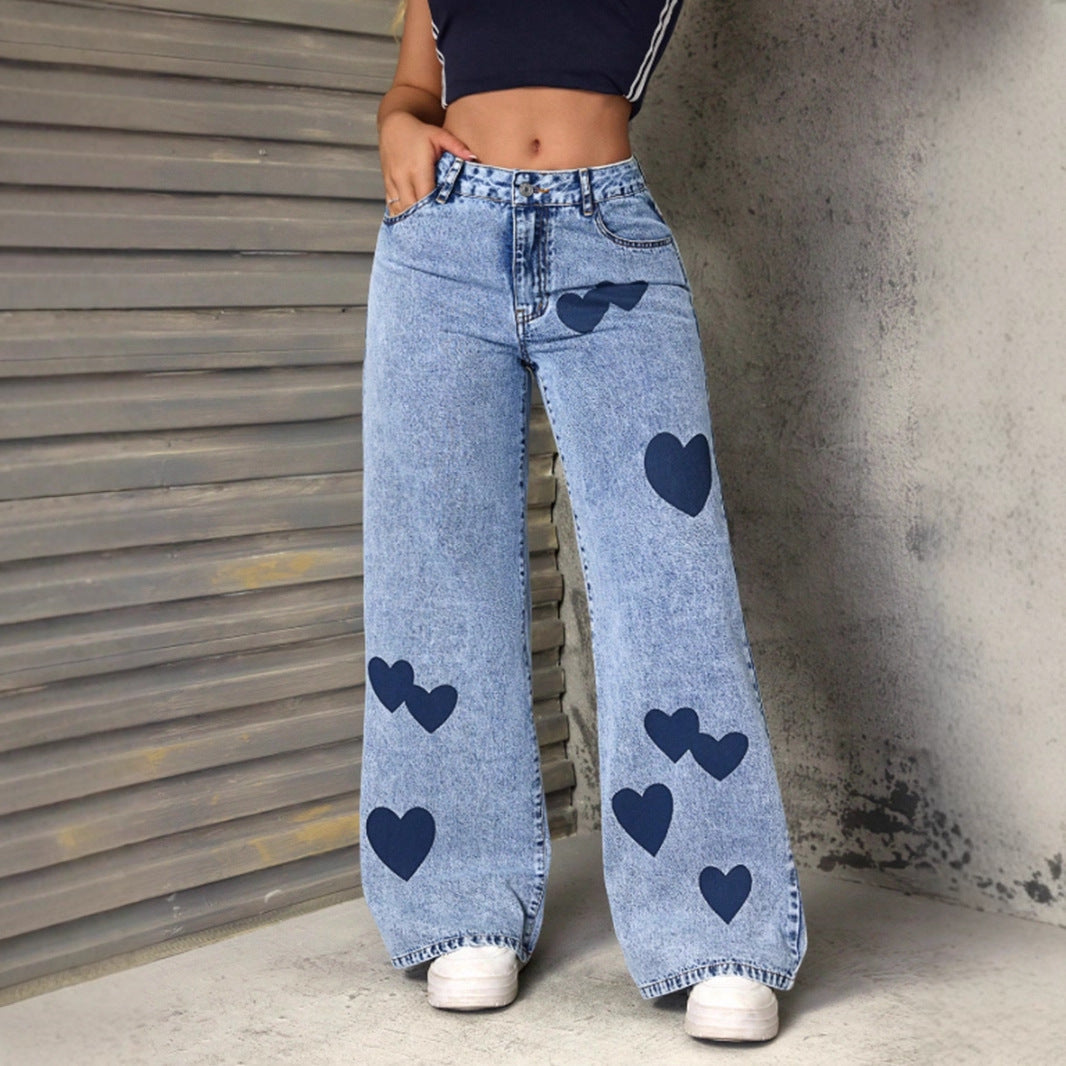 Women Y2K Heart Graphic Denim Jeans LionStyle